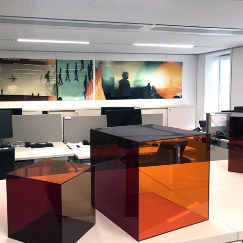 Vores topmoderne UV-printteknologi gør det muligt at skabe skræddersyede print direkte på akrylmaterialer. Dette resulterer i en enestående eksklusivitet og enestående kvalitet. Med en 0+4 farveprinter opnår vi subtile nuancer og dybde, der fanger øjet og fordyber beskueren i dit designs verden. Slip for besværet med at påføre folie på akryl og undgå bobler og skæve montageprocesser.